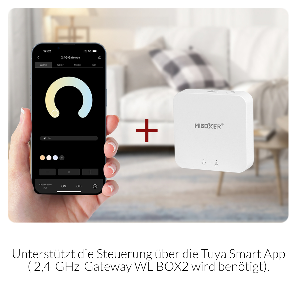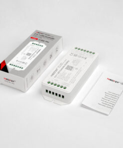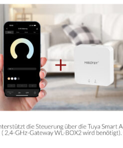 In Kombination mit einer WL-Box2 kann dieser Controller auch per Sprachsteuerung oder App genutzt werden. Mit der App stehen noch viele weitere Funktionen zur Verfügung. Der Controller dient gleichzeitig als Signalverstärker mit einer Reichweite von 30m. Wenn Sie in ausreichendem Abstand mehrere Controller im Einsatz haben, können Sie somit auf einen separaten Verstärker verzichten. Damit lassen sich auch größere Distanzen überbrücken. Ein Wechsel zwischen Hochfrequenz (8 KHz) und Niedrigfrequenz (500 Hz) ist möglich. Dieser Controller kann Einfarbige und CCT-Streifen steuern. Durch den höheren Strom-Output je Kanal, werden bei längeren LED-Streifen weniger Controller benötigt.