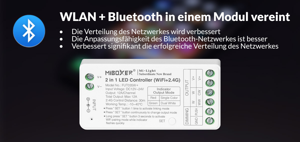Der MiBoxer Controller FUT035W+ gibt eine einfachen Einstieg in die Smart Home Welt mit nahezu unbegrenzten individuellen Vorlieben und praktischen Erweiterungen, u.a.: