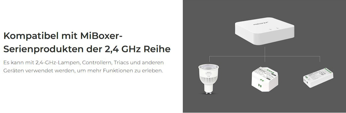 Kompatibilität: Die WL-BOX 2 ist mit einer Vielzahl von LED-Streifen, Strahlern und MiLight-Controllern kompatibel. So können Sie Ihr Zuhause ganz nach Ihren Wünschen gestalten.