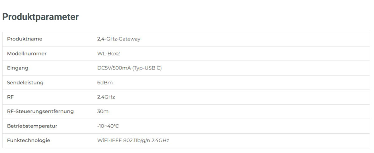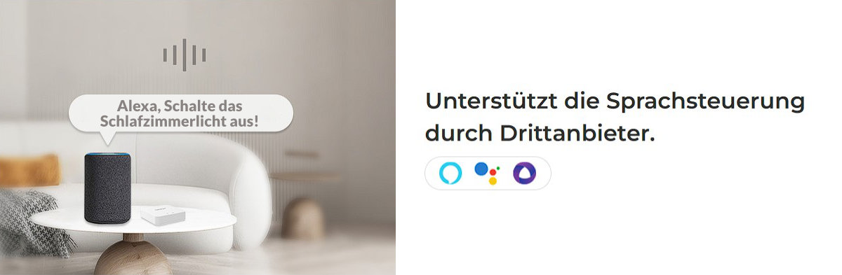 – WL-Box2 (2,4 GHz Gateway): Die Steuerung erfolgt nur per Sprachanweisungen (Stromanschluss separat)