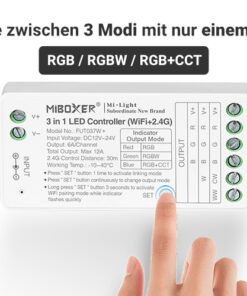 Der Mi-Light / MiBoxer Controller FUT037W+ gibt eine simple Einstiegsmöglichkeit in die Smart Home Welt mit vielen praktischen und individuellen Bedürfnissen und Erweiterungen, u.a.: