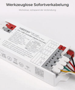 Entdecken Sie die smarten Möglichkeiten des MiBoxer Controllers E3-ZR und tauchen Sie ein in die faszinierende Welt des Smart Homes. Mit der Tuya Smart App als Unterstützung bietet dieser Controller nicht nur einen einfachen Einstieg, sondern auch praktische Erweiterungen für ein individuell gestaltetes Zuhause. Automatisieren Sie das An- und Ausschalten Ihrer Lichter entsprechend der Tageszeit und schaffen Sie Wohnkomfort sowie Atmosphäre nach Ihren persönlichen Vorlieben. Erstellen Sie mit Leichtigkeit Szenen für verschiedene Anlässe, wie Lesen, Arbeiten, Entspannen oder Film schauen, und steuern Sie Ihre Lampen und Leuchten bequem in Gruppen über die Tuya Smart App. Die Anwesenheitssimulation, Timer-Funktionen und die Möglichkeit, Ihre Lichter im Rhythmus der Musik spielen zu lassen, sind nur einige der vielfältigen Funktionen, die der MiBoxer Controller E3-ZR bietet. Mit Weck- und Schlaffunktion rundet er Ihr smartes Erlebnis ab. Gestalten Sie Ihr Zuhause intelligent, bequem und ganz nach Ihren Wünschen – erleben Sie die Zukunft des Wohnens!