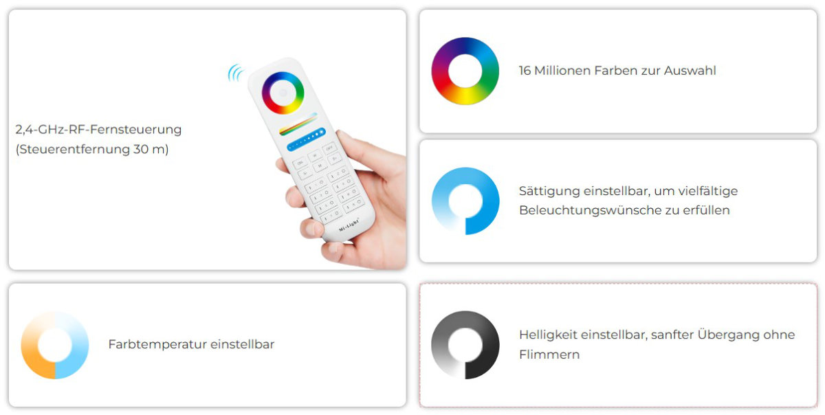 Mi-Light Fernbedienung Zigbee 3.0 (Diese müssen separat bestellt werden: FUT089Z)