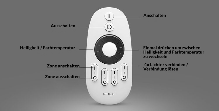 4-Zonen Fernbedienung mit Drehrad für CCT LED-Beleuchtung