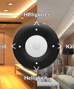 Die smarte CCT – Fernbedienung von Mi-Light ist ein moderner High-End Controller. Das batteriebetriebene, handliche Steuergerät für Dual White CCT LED-Streifen und andere Leuchtmittel wie Strahler oder Spots wird für folgende Funktionen genutzt: Dimmer, Ein/Aus Schalter, Farbtemperaturwechsel.