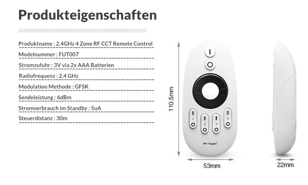 4-Zonen Fernbedienung für CCT LED-Beleuchtung