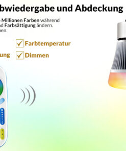 Es werden 2 AAA Batterien benötigt, die nicht mit im Lieferumfang enthalten sind. Die Reichweite dieser Fernbedienung beträgt 30m. Daher können Sie Ihre Geräte auch über eine größere Entfernung steuern. Sie ist sehr modisch, schön und hat ein nachtleuchtendes Rahmendesign. Das hilft Ihnen dabei im Dunkeln Sie leichter zu finden.