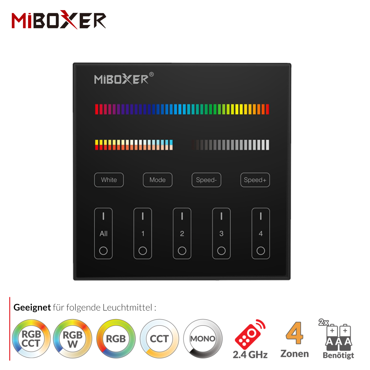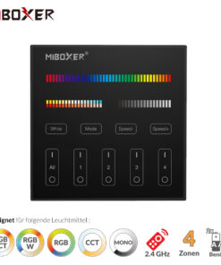 Schwarzes 4-Zonen Kontroll Panel für RGB + CCT LED-Streifen B4-B