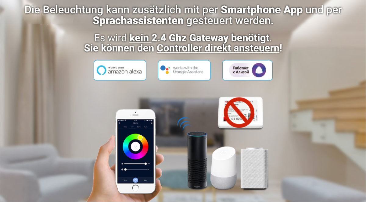 Mit dem richtigen Zubehör können Sie Ihre LED-Streifen auch per Sprache steuern. Dazu benötigen eins der folgende Produkte: