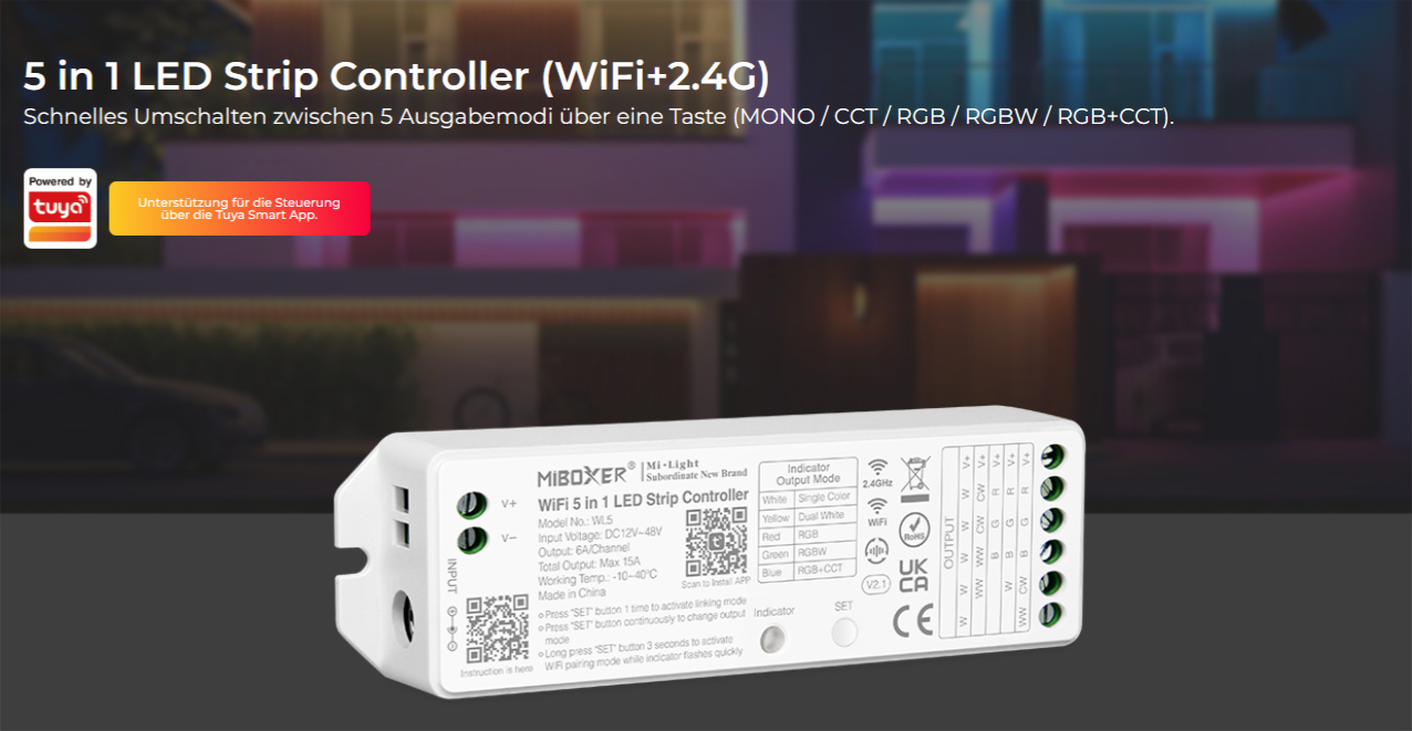 – WL5 Smart LED-Stripe Controller (Steuerung per Fernbedienung oder per Sprachsteuerung)