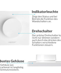Die Wandfernbedienung lässt sich problemlos an Ihrer bevorzugten Stelle anbringen und fügt sich nahtlos in Ihr vorhandenes Raumdesign ein. Die Bedienung ist kinderleicht: Wählen Sie einfach den gewünschten Lichtmodus, und die Fernbedienung erledigt den Rest. Darüber hinaus kann die Fernbedienung leicht vom Magnethalter abgenommen und als Handfernbedienung verwendet werden.