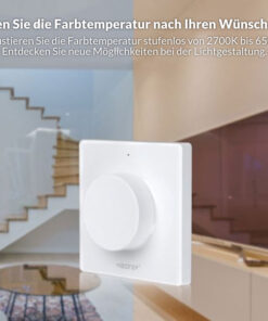 Die CCT Wandfernbedienung ermöglicht eine präzise Anpassung der Helligkeit und Farbtemperatur Ihrer Beleuchtung. Ganz gleich, ob Sie warmes, gemütliches Licht für einen entspannten Abend oder kühles Tageslicht für produktives Arbeiten bevorzugen – mit nur einem Knopfdruck finden Sie die perfekte Lichtstimmung für jede Gelegenheit.