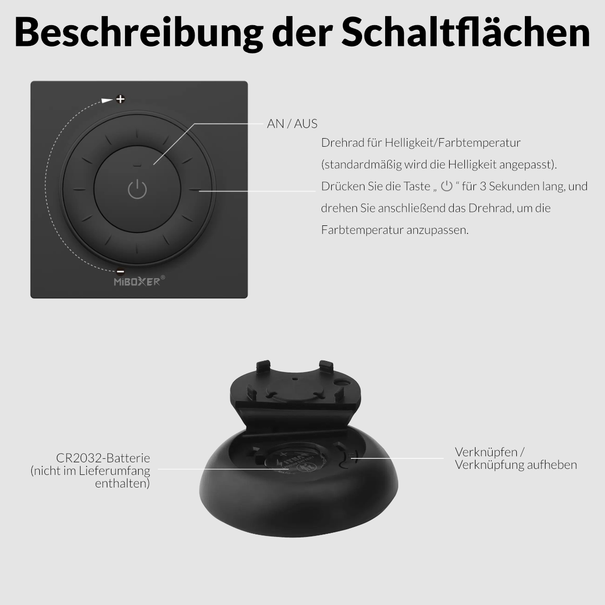 Drehbare Fernbedienung Dimmer / Schalttafel für CCT LED-Streifen – Miboxer / Mi-Light K3 / K3-B