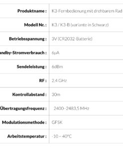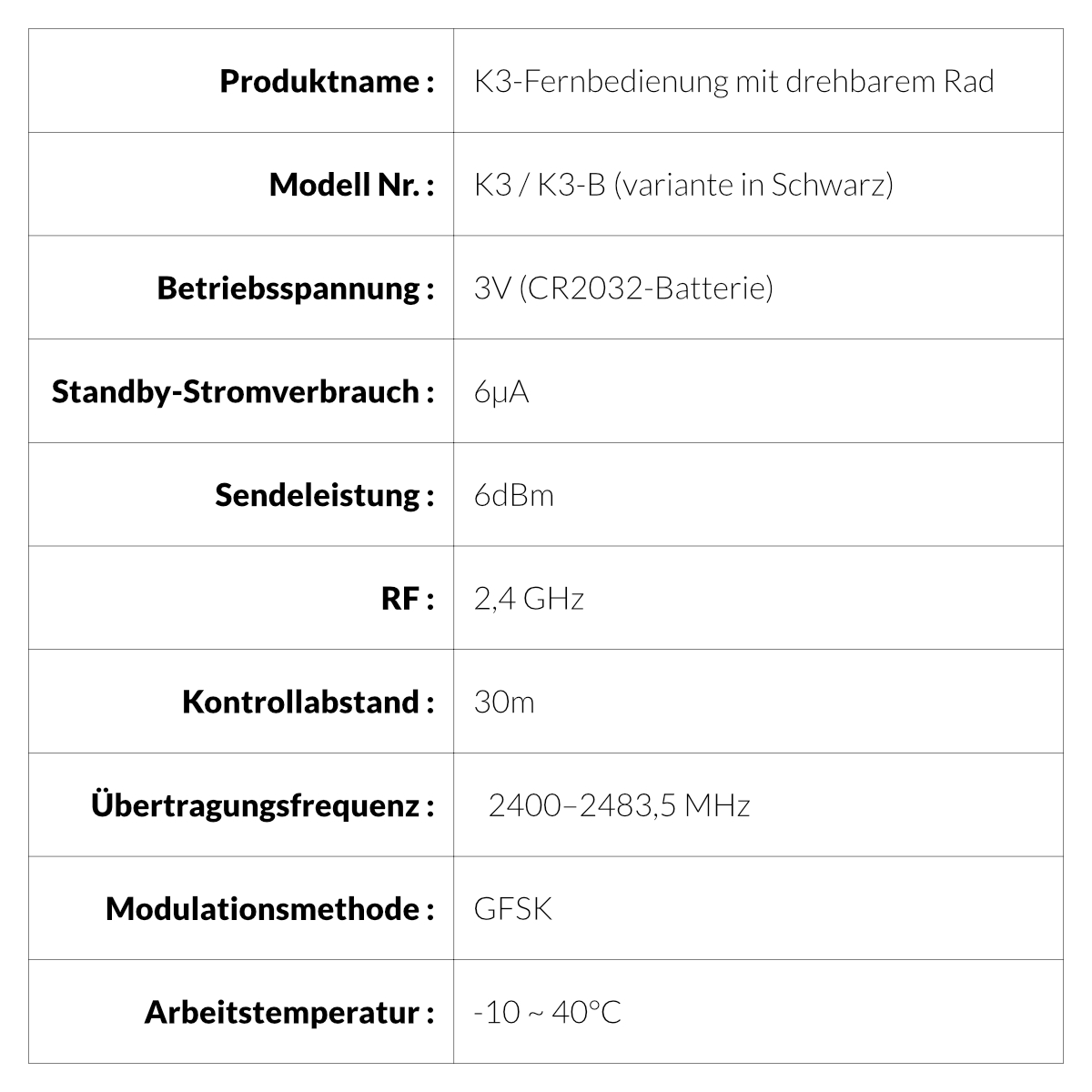 Mit dem MiBoxer K3-Drehschalter können Sie kompatible MiBoxer Lampen und Leuchtmittel ganz einfach dimmen und die Farbtemperatur (falls unterstützt) regeln. Das Gehäuse ist in Schwarz oder Weiß erhältlich und kann als wandmontierter Drehdimmer mit Magnethalter oder als tragbare Fernbedienung genutzt werden – für maximale Flexibilität bei der Platzierung Ihres CCT-Weißton-Dimmers.