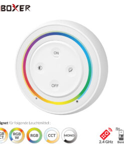 Die intelligenten Panel-Controller von Mi-Light sind wahre High-End Controller mit TouchScreen. Das batteriebetriebene Panel für Dual White CCT LED-Streifen und andere Leuchtmittel wie Spots wird für folgende Funktionen genutzt: Dimmer, Ein/Aus Schalter, Farbtemperaturwechsel, Farbwechsel und einstellen der Farbsättigung. Die Fernbedienung ist mit der neuesten Touch- und Wireless- Technologie ausgestattet und besitzt ein Touch-Panel inkl. Kontrollrad.