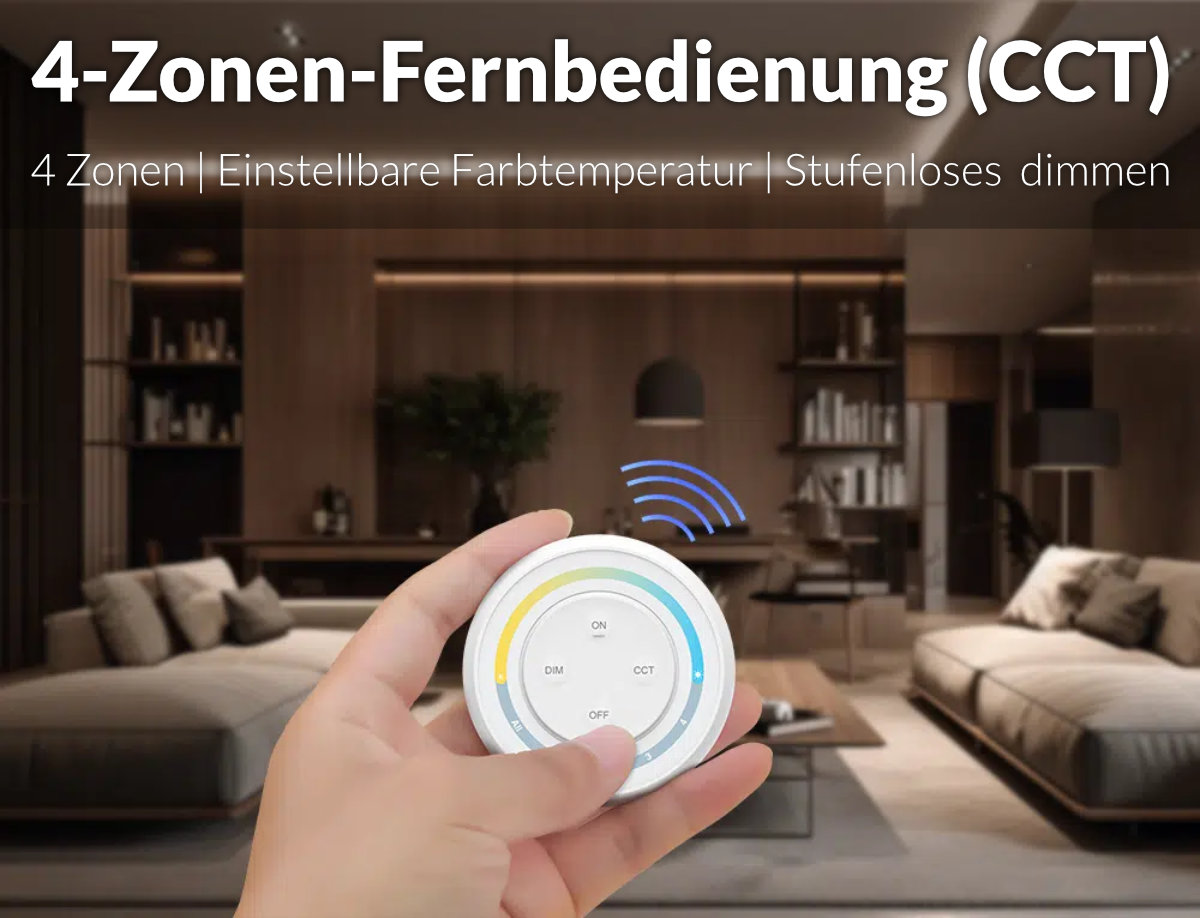 Feineinstellung der Farbtemperatur durch CCT-SteuerungDie CCT Wandfernbedienung ermöglicht eine präzise Anpassung der Helligkeit und Farbtemperatur Ihrer Beleuchtung. Ganz gleich, ob Sie warmes, gemütliches Licht für einen entspannten Abend oder kühles Tageslicht für produktives Arbeiten bevorzugen – mit nur einer Berührung finden Sie die perfekte Lichtstimmung für jede Gelegenheit. |