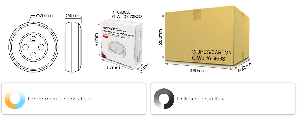 Mit dem MiBoxer S1-Drehschalter können Sie kompatible MiBoxer Lampen und Leuchtmittel ganz einfach dimmen und die Farbtemperatur (falls unterstützt) regeln. Das Gehäuse ist in Schwarz oder Weiß erhältlich und kann als wandmontierter Drehdimmer mit Magnethalter oder als tragbare Fernbedienung genutzt werden – für maximale Flexibilität bei der Platzierung Ihres CCT-Weißton-Dimmers.