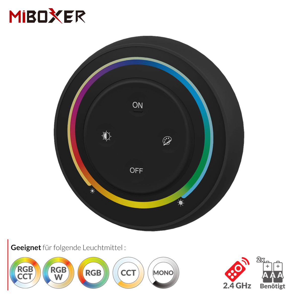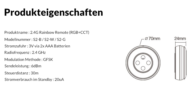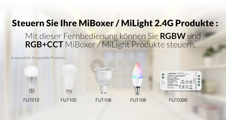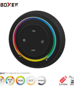 Die intelligenten Panel-Controller von Mi-Light sind wahre High-End Controller mit TouchScreen. Das batteriebetriebene Panel für Dual White CCT LED-Streifen und andere Leuchtmittel wie Spots wird für folgende Funktionen genutzt: Dimmer, Ein/Aus Schalter, Farbtemperaturwechsel, Farbwechsel und einstellen der Farbsättigung. Die Fernbedienung ist mit der neuesten Touch- und Wireless- Technologie ausgestattet und besitzt ein Touch-Panel inkl. Kontrollrad.